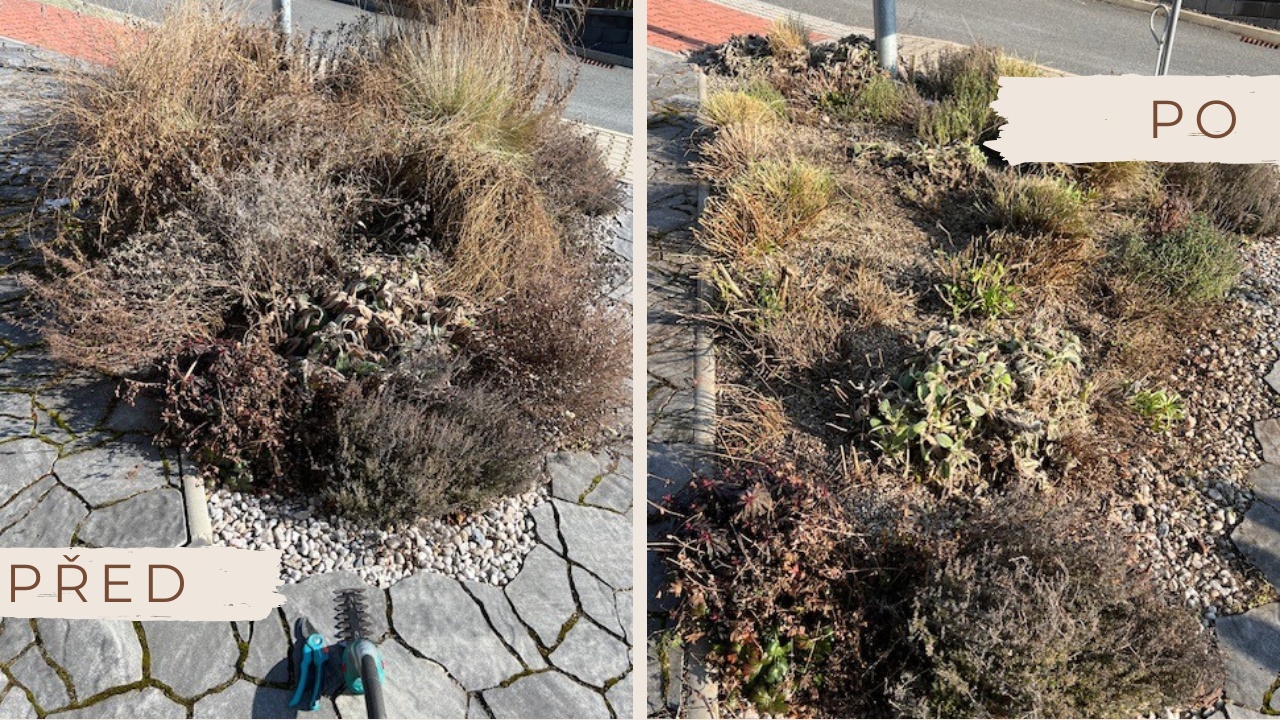✅ Zahrada bude vypadat upraveněji – suché části trvalek chránily půdu v zimě, ale teď už jen zbytečně brzdí nový život.